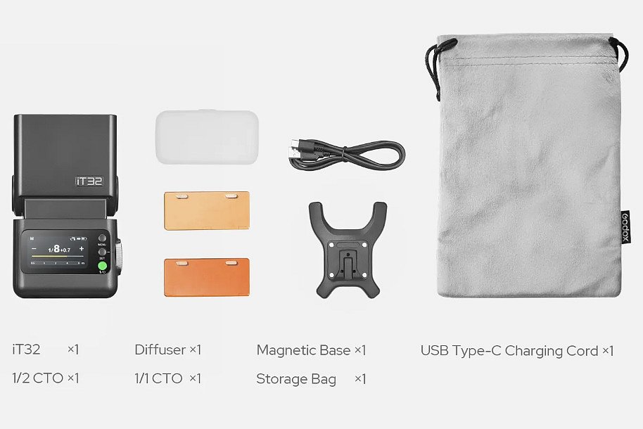 V kombinaci s různými verzemi blesku X5 (zakoupeného samostatně) se jediný blesk iT32 bez problémů přizpůsobí fotoaparátům Canon, Nikon, Sony, Fujifilm a OM System a nabízí plnou podporu TTL a HSS pro všechny značky.
